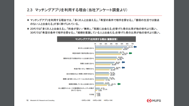 利用理由の「結婚を意識している人と出会える」と答えた30代の方が他の世代より高いのが興味深いですね。